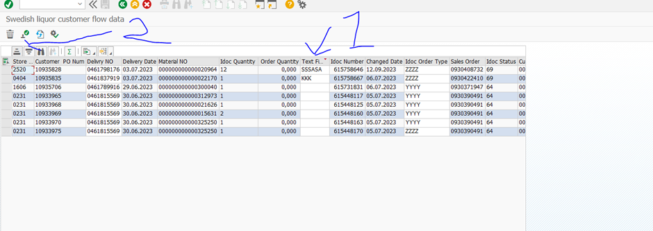 Steg 6- Skriv in en Text på alla rader du vill justera ( Obs filen kan ej köra igenom Tomgods). viktigt att köra igenom artiklar med backar/ tomfat manuellt.