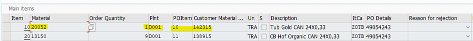 När PO-numret är inlagt knappar du sedan in det material du vill göra din order på. Du skriver in artikelnummer, antal, och sedan ENTER. OBS! Glöm ej radreferenser samt depå(plant).
