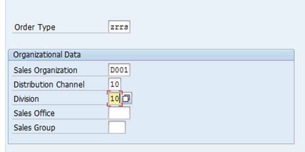 I VA01 så skriver du in vilken ordertyp du vill använda och fyller i enligt nedan: