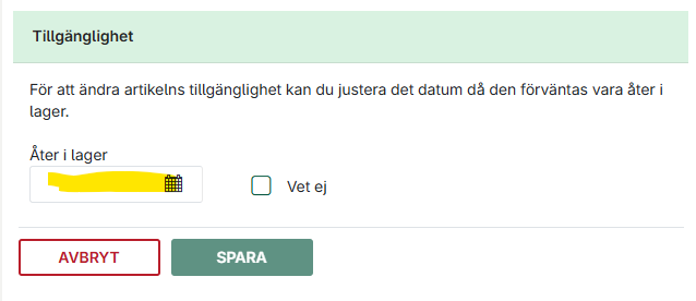 7. Där fyller du i återdatum då artikeln förväntas åter, om det är prel v10 så sätt fredag den veckan, sen spara.