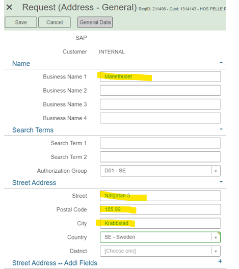 Under Request Rolse Task klickar du på "Request (Address – General HD) ”