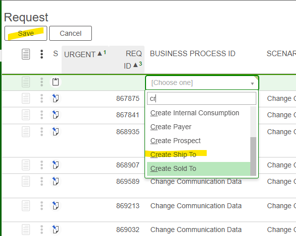 Tryck på Add, sen i rullistan väljer du Create shipto, tryck sen på Save