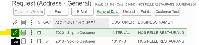 Klicka sen på pennan för att lägga in uppgifterna på nya shipto: