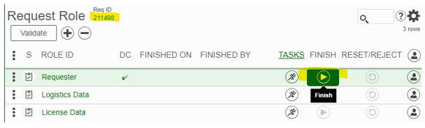 Tryck sen på SAVE och skriv upp Req ID ( bra att ha i kommentaren på mailet så att kollega vet vad som skapats) avsluta sen requesten som vanligt genom att trycka på finish: