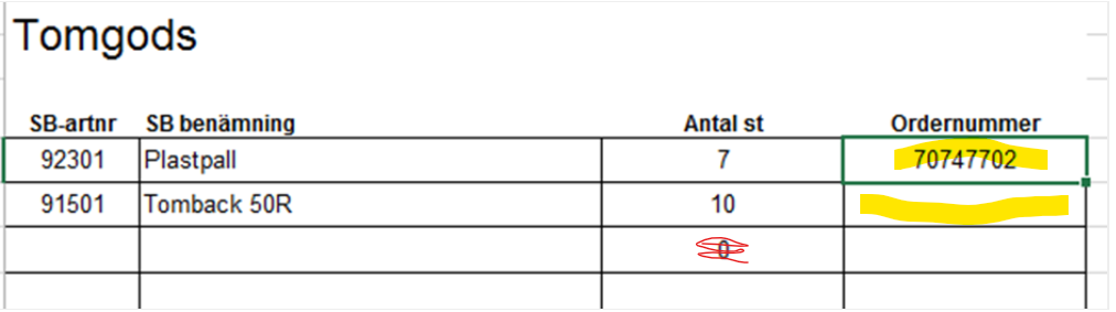- Du behöver kopiera ordernumret så det lägger sig även på tomgodset som ligger längst ner. Ta även bort 0an.