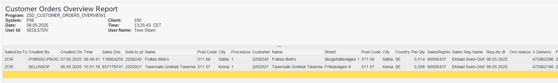 2. Gå in i SAP och transaktionen Customer Orders Overview.