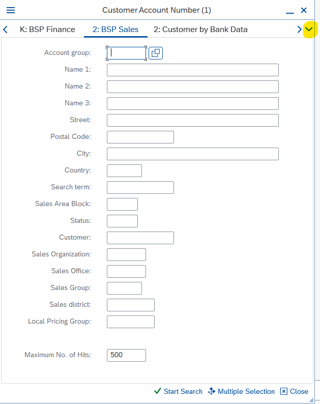 2. Tryck på rutorna jämte Customer: