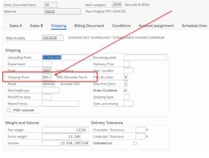 Dubbelklicka på artikelraden och gå till fliken shipping