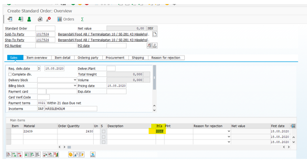 Lägg in kund nr , datum och artikel samt antal enligt bild nedan. Man kan bara lägga order på helpallsnivå från spärrkod 7.