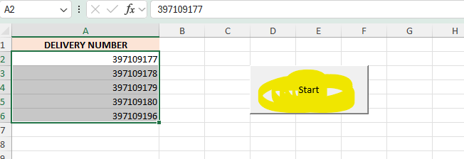 12. Kontrollera så att du bara har ett SAP fönster uppe (startsidan), tryck därefter på Start i excelfilen: