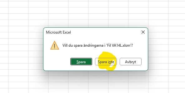 16. SUPERVIKTIGT- stäng ner excel filen UTAN ATT SPARA!!