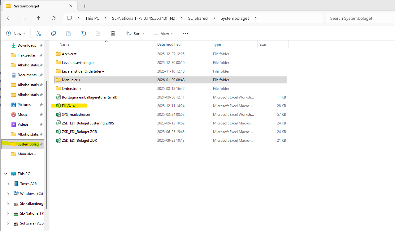 6. Öppna filen "Fil VA14L" som ligger i mappen Systembolag genom att dubbelklicka på den: